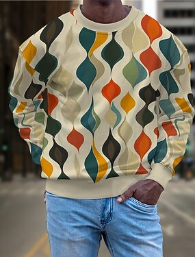 Miesten Graffiti Puserot College Aja sivuun Pitkähihainen Villapaita Tiukka pyöreä kaula-aukko Muoti Päivittäin Vapaa-aika 3D-tulostus Katuvaatteet Bile 3D-tulostus 봄 & Syksy