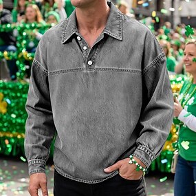 Miesten Goottilainen kauhu Tribaali Poolopaidat Golfpaita Pitkähihainen Poolopaidat Kauluspaidat Vintage Vapaa-aika Lomavaatteet Festivaalivaatteet Juhla-asut 3D-tulostus Napit Sininen Ruskea Apila