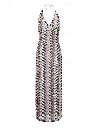 Naisten Maksimekko Kotelomekko Slip Mekko Loma Vapaa-aika ulko- Bile Normaali Geometrinen Hihaton Riipuskaula Sininen Sateenkaari Harmaa Kesä Kevät