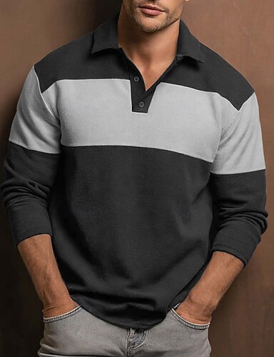 Miesten Vaakasuuntaiset nauhat Rugby Polo Pitkähihainen Poolopaidat Kauluspaidat Urheiluasut Vapaa-aika ulko- Koulu Urheilu- ja treenivaatteet 3D-tulostus Napit Kevät Syksy Sininen Ruskea Apila