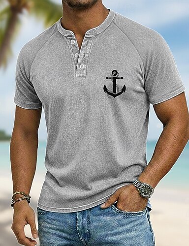 Miesten Kuvitettu Peräsin Puuvillainen paita Henley toppi Happopesupaita Lyhythihainen Vintage Suunnittelija Vapaa-aika Kausaliteetti Päivittäin ulko- Kevät kesä Kesä Kevät Vaalean sininen Purppura