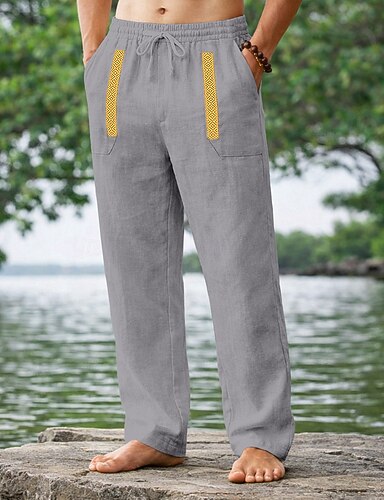 Miesten Pellavahousut Housut Kesähousut Rantahousut Kurenauha Joustava vyötärö Yhtenäinen väri Mukavuus Hengittävä Täyspitkä Päivittäin ulko- Hiekkaranta Loma Muoti Musta Valkoinen Joustamaton