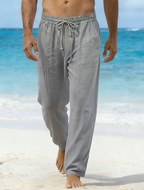 Miesten Pellavahousut Housut Kesähousut Roikkuvat housut Rantahousut Kurenauha Joustava vyötärö Suora jalka Tavallinen Mukavuus Hengittävä Täyspitkä Kausaliteetti Päivittäin Pyhäpäivä Loma Muoti