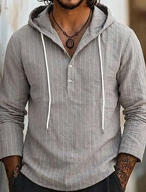 Miesten Paita Pellava paita Kesä paita Ranta-asut Hupullinen paita Raidalliset paidat Pystysuuntaiset nauhat Kausaliteetti Loma Musta Valkoinen Laivaston sininen Apila Pitkähihainen Huppari Kesä Kevät