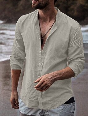 Miesten Paita Pellava paita Kesä paita Ranta-asut Band kauluspaita Vaarin kauluspaita Tavallinen Kausaliteetti Loma Sininen Musta Valkoinen Khaki Pitkähihainen Pystykaulus Kesä Kevät Vaatetus Tasku