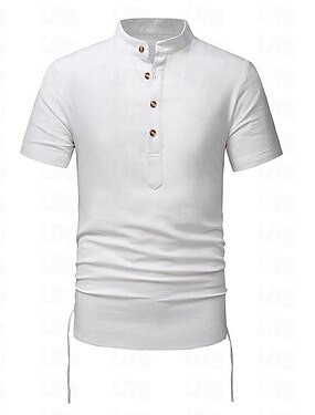 Miesten Paita pellava paita Puuvillainen pellava paita Valkoinen puuvillainen paita Kiinalainen kauluspaita Mandarin kauluspaita Tavallinen Loma Katu Musta Valkoinen Laivaston sininen Khaki