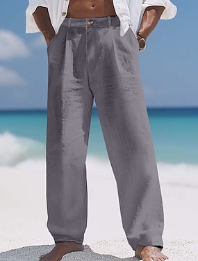 Miesten Pellavahousut Housut Kesähousut Tasku Suora jalka Tavallinen Mukavuus Hengittävä Kausaliteetti Päivittäin Pyhäpäivä Muoti Klassinen tyyli Musta Sininen