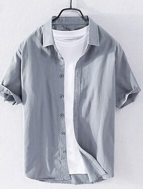 Miesten Pellava paita Kesä paita Ranta-asut Button Up paita Tavallinen Loma Curise Valkoinen Sininen Harmaa Lyhythihainen Sänkyjen avaus Kesä Vaatetus