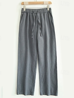 Miesten Pellavahousut Housut Kesähousut Rantahousut Kurenauha Tasku Elastinen vyötärönauha Tavallinen Mukavuus Hengittävä Täyspitkä Päivittäin Katuvaatteet Muoti Rento / urheilullinen Loose Fit