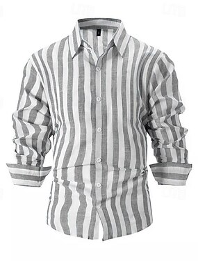 Miesten Puuvillainen pellava paita Kiinalainen kauluspaita Mandarin kauluspaita Kesä paita Rantapaita Raidalliset paidat Raidoitettu Loma Katu Musta Valkoinen Harmaa Pitkähihainen Stand-kaula-aukko