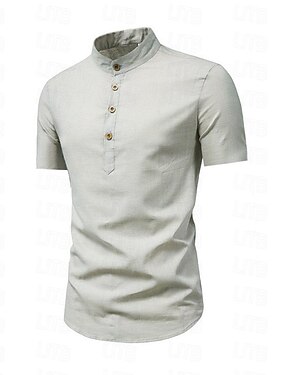 Miesten Paita Pellava paita Viikinki tyyli Band kauluspaita Kesä paita Ranta-asut Yhtenäinen väri Loma Katu Musta Valkoinen Laivaston sininen Harmaa Pitkähihainen Pystykaulus Kesä Kevät Vaatetus Napit