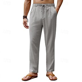 Miesten Pellavahousut Housut Kesähousut Rantahousut Edessä tasku Suora jalka Tavallinen Mukavuus Hengittävä Kausaliteetti Päivittäin Pyhäpäivä Muoti Perus Musta Valkoinen