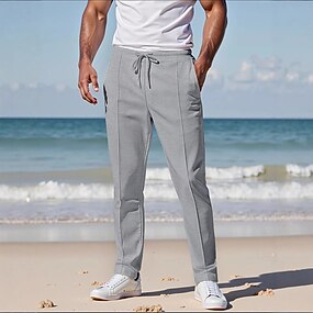 Miesten Pellavahousut Housut Kesähousut Rantahousut Tasku Suora jalka Tavallinen Mukavuus Hengittävä Kausaliteetti Päivittäin Pyhäpäivä Muoti Klassinen tyyli Valkoinen Khaki
