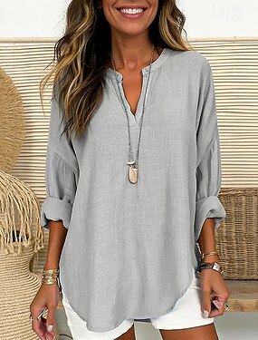 Naisten Paita Painike ylös Pusero Keinopuuvillainen pellava Napit Yhtenäinen väri Perus Vapaa-aika 3/4 hiha V kaula-aukko Tavalliset topit Päivittäin Harmaa Kesä Kevät
