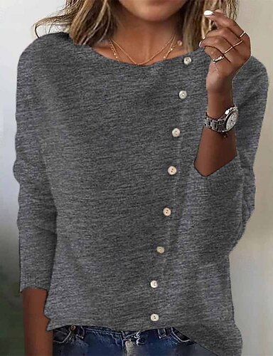 Naisten Neulos Muoti Yhtenäinen väri Joustin Tiukka pyöreä kaula-aukko Kudottu Epäsymmetrinen helma Pitkähihainen Tavalliset topit Neuloa ulko- Päivittäin Pyhäpäivä Harmaa Syksy