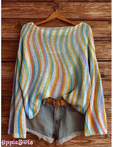 Naisten neulepusero rento pehmeä geometrinen väriblokki tyylikäs moderni pitkähihainen pyöreä kaula-aukko normaali topit päivittäin juhla painettu sininen oranssi vihreä khaki harmaa kevät syksy talvi