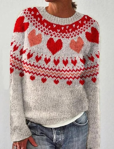 Naisten Neulos Muoti Kuvitettu Eläin Joustin V kaula-aukko Kudottu Pitkähihainen Tavalliset topit Neuloa Pyhäpäivä Bile Viikonloppu Musta Punastuvan vaaleanpunainen Talvi