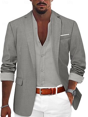 Miesten Blazer-takki Pellava bleiseri Lovikaulus Muoti Kevyt Retro / vintage Yhtenäinen Pellava bleiseri Musta Valkoinen Harmaa Räätälöity istuvuus Yksirivinen yksi nappi
