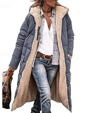 Naisten Talvitakki Toppatakki Tuulenkestävä Pidä lämpimänä Tasku Avoin etuosa Vintage Päivittäin Vapaa-aika Tavallinen Joululahjat Loma Kausaliteetti Päivittäin Avoin etuosa Pitkä Hupullinen Normaali