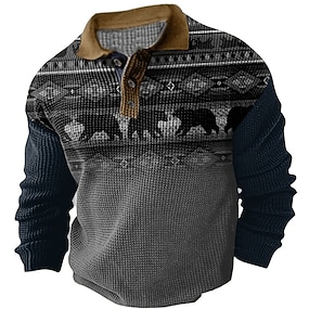 Miesten karja Kantri Poolopaidat Pullover Pitkähihainen Poolopaidat Kaulus Vintage Vapaa-aika ulko- Katuvaatteet 3D-tulostus Napit Syystalvi Musta Valkoinen Khaki