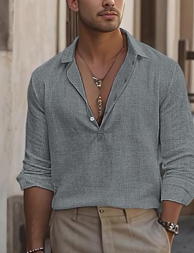 Miesten Paita pellava paita Kesä paita Ranta-asut Rento paita Button Up paita Tavallinen Kausaliteetti Päivittäin Musta Valkoinen Sininen Apila Pitkähihainen Kauluskäänne Kevät kesä Vaatetus