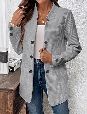 Naisten Bleiseri Mukava Hengittävä Napit Muoti Moderni Tavallinen Työ Päivittäin Normaali Stand-kaula-aukko Normaali Pitkähihainen Päällysvaatteet Musta Valkoinen Harmaa Syksy Talvi