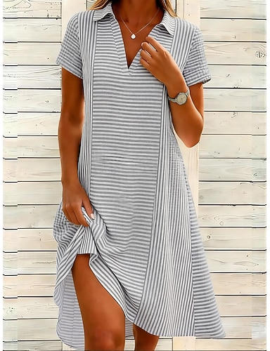 Naisten Midimekko Rento mekko Tyylikäs Muoti Moderni ulko- Loma Bile Loose Fit Tavallinen Puolihiha V kaula-aukko Sininen Musta Valkoinen Rubiini Kesä Kevät
