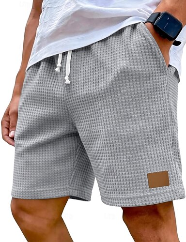 Miesten Vohveli shortsit Shortsit Rennot shortsit Teksturoituja shortseja Tasku Joustava vyötärö Textured Tavallinen Solid Color Mukavuus Hengittävä Polven yläpuolella Kausaliteetti ulko- Hiekkaranta