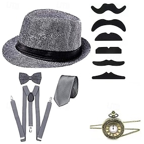 Setti Vintage Retro / vintage Möly 20s Tarvikesarja Fedora Hat lisävarusteiden kanssa Suuri Gatsby Herrasmies Halloween Naamiaispuku Miesten 5 kpl Halloween Karnevaali Juhla Naamiaiset Aikuiset Hattu