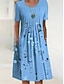 Naisten Midimekko Keinopuuvillainen pellava Väljä mekko Rento mekko Kesämekko Muoti Moderni Päivittäin Hiekkaranta Viikonloppu Normaali Kukka Lyhythihainen Tiukka pyöreä kaula-aukko Sininen Valkoinen
