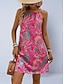 Naisten Mini mekko Satiini mekko Juhlamekko Riimukaula-mekko Muoti Moderni ulko- Hiekkaranta Loma Normaali Paisley-kuvio Hihaton hihnat Riipuskaula Rubiini Kesä Kevät