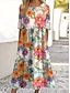 naisten vapaa-ajan mekko kukkaprintti v kaula pitkä mekko maxi mekko etninen rento päiväloma 3/4-pituiset hihat kesä