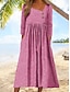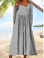 Naisten Midimekko Rento mekko Kesämekko Painatus mekko Tyylikäs Muoti Moderni ulko- Hiekkaranta Loma Normaali Raidoitettu Pitkähihainen V kaula-aukko Rubiini Apila Harmaa Kesä Kevät