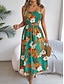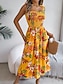 Naisten Midimekko Rantamekko A linjainen mekko Kukka mekko Slip Mekko Tyylikäs Muoti Moderni ulko- Hiekkaranta Loma Normaali Kukka Hihaton Nelikulmainen kaula-aukko Sininen Keltainen Apila Kesä Kevät