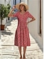 Naisten Midimekko Rento mekko Kukka mekko Tyylikäs Muoti Moderni Päivittäin ulko- Hiekkaranta Normaali Kukka Puolihiha Tiukka pyöreä kaula-aukko Apila Kesä Kevät