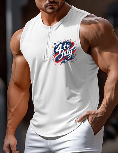 Miesten Hihaton Liivi Aluspaita Hihaton paita Hihaton U kaula-aukko Henley Kesä Tilkkutäkki Painettu Itsenäisyyspäivä Muoti Urheilullinen Klassinen Vetoketju Kuvitettu Katu Kausaliteetti Urheilu
