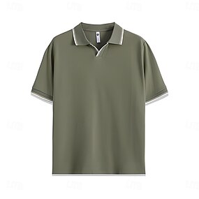 Miesten T-paita Lyhythihainen Ylitaivutettava kaulus V kaula-aukko Kesä Kevät Loma Vintage Neutraali Raita-Trim Väripaletti Koulu Kouluts ulko- Musta Valkoinen Kallion sininen Top T-paita miehille