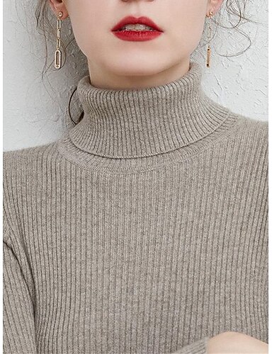 Naisten Neulos Pusero Katutyyli Vapaa-aika Yhtenäinen väri Poolokaulus Kudottu Pitkähihainen Tavalliset topit Neuloa Päivittäin Pyhäpäivä Viikonloppu Laivaston sininen Kameli Syksy Talvi