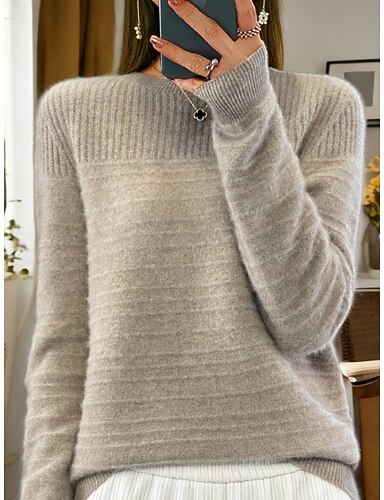 naisten villapaita villapaita neulepusero pyöreä pääntie neulottu kevät syksy kotiin päivittäin loma päivittäin pehmeä pitkähihainen puhdas väri pinkki punainen