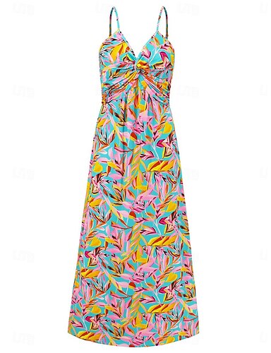naisten rento mekko keinu mekko slip mekko kukka lehtiä selkänojaton print olkaimet pitkä mekko maxi mekko havaiji rento päivittäinen loma hihaton kesä