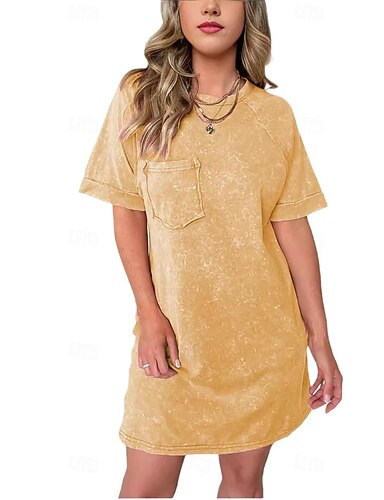 Naisten Polvipituinen mekko Pesty mekko Vintage mekko Rento mekko Muoti Perus Päivittäin ulko- Loma Normaali Tavallinen Lyhythihainen Tiukka pyöreä kaula-aukko Stand-kaula-aukko Sininen