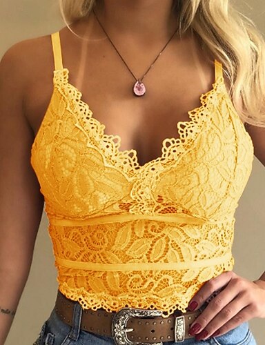 Naisten Pusero Pitsi Topit Tavallinen Moderni Vapaa-aika Hihaton Olkaimellinen Rajaa topit Päivittäin Bile Pitsi Avoin selkä Valkoinen Keltainen Punastuvan vaaleanpunainen Sininen Apila Kesä