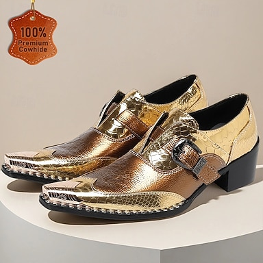 miesten kullanväriset metallinhohtoiset loaferit teräväkärkisellä – glam rock -tyyliset naudannahkakengät lavaesityksiin, klubeille ja virallisiin juhliin