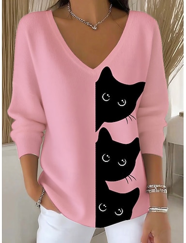 Naisten Neulos Pusero Muoti Katutyyli Vapaa-aika Kuvitettu Eläin V kaula-aukko Ylisuuret Kudottu Pitkähihainen Tavalliset topit Neuloa ulko- Päivittäin Punastuvan vaaleanpunainen Kevät Syksy
