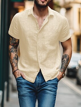 Miesten Paita Pellava paita Kesä paita Ranta-asut Tavallinen Loma Kausaliteetti Valkoinen Punastuvan vaaleanpunainen Sininen Khaki Lyhythihainen Kauluskäänne Kesä Kevät kesä Vaatetus