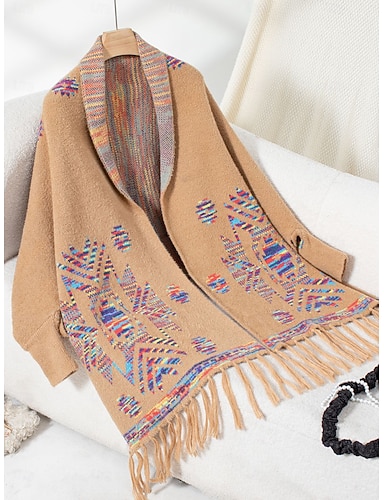 Naisten Bolero Muoti Päivittäin Geometrinen Avoin etuosa Painettu Pitkähihainen Pitkät topit Neuloa Muodollinen Työ Viikonloppu Musta Khaki Syksy Talvi