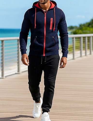 Miesten Huppari Verryttelypuku 2-osainen verryttelypuku Kurenauha Sulkea jnk vetoketju Väripalikka Liikunta-asut Syksy Talvi Musta Laivastosininen Ammatti Ulkoilu Matkailu Kevyt Muoti Pitkähihainen