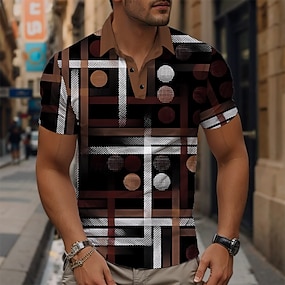 Miesten Geometrinen Golfpaita Lyhythihainen Poolopaidat Kauluspaidat Vintage Vapaa-aika Lomavaatteet Muodolliset vaatteet Festivaalivaatteet Napit 3D-tulostus Kesä Ruskea