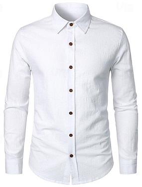 Miesten Paita Pellava paita Kesä paita Ranta-asut Button Up paita Tavallinen Loma Kausaliteetti Valkoinen Punastuvan vaaleanpunainen Apila Khaki Pitkähihainen Sänkyjen avaus Kesä Kevät Vaatetus