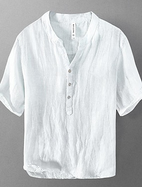 Miesten Pellava paita Popover paita Rento paita Rantapaita Band kauluspaita Tavallinen Loma Havaijilainen Musta Valkoinen Punastuvan vaaleanpunainen Oranssi Pitkähihainen Henley Kevät kesä Vaatetus